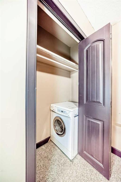 Welcome to this well-appointed 1-bedroom condo offering exceptional value in the heart of the Beltline. This below-grade unit features an open floor plan with a spacious living area, ideal for both relaxing and working from home. The kitchen is open to the living room and includes maple cabinetry, ample counter space, and stainless-steel appliances. The bedroom is generously sized with double closets, while a 4-piece bathroom and in-suite laundry provide everyday convenience. One assigned parking stall (#17...