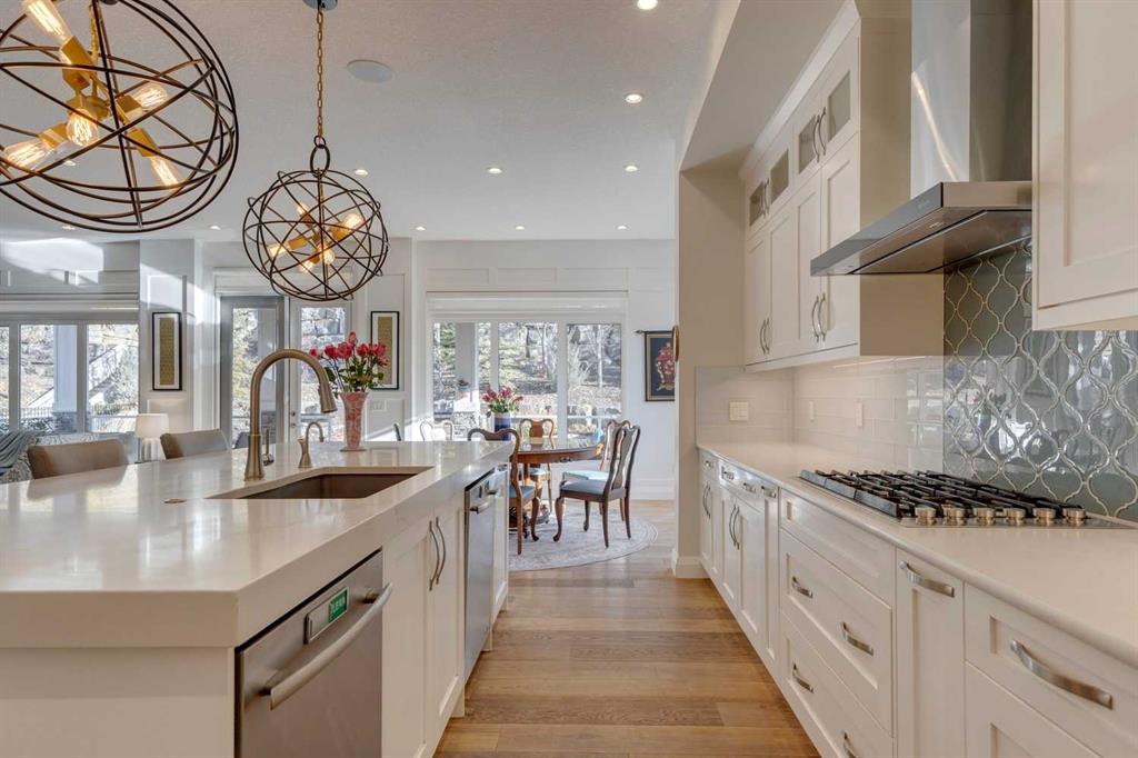 Watermark at Bearspaw - 130 Hillside Terrace: Welcome to this fully developed estate property built by Prominent Homes in the coveted community of Watermark at Bearspaw. Located on a quiet street, this stunning home offers nearly 5,000 sqft of total living space with 5 bedrooms, 4.5 bathrooms, and a heated attached triple-car garage. The bright, open main floor features hardwood throughout and a spacious front entry. The gourmet central kitchen includes quartz countertops, a large island with seating for ...