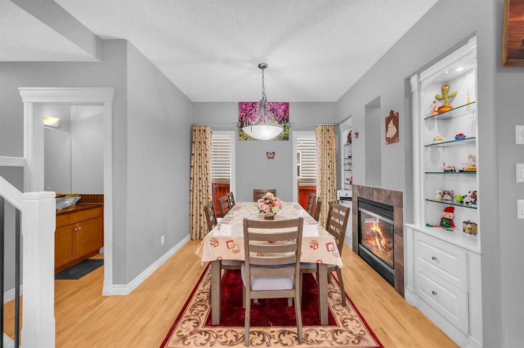 Beautifully upgraded two-storey front garage home in the heart of Coventry Hills, offering the perfect blend of style, comfort, and practicality. The main floor features 9-foot knockdown ceilings, rich hardwood flooring, and a welcoming entry with a front closet and decorative niche. The open-concept layout flows seamlessly through a bright living area with two large windows, a cozy natural gas fireplace in the dining area with built-in shelving, and a stylish kitchen complete with maple cabinetry, granite ...