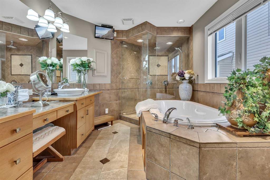 Stunning original owner walk out bungalow. Loaded with some fantastic, amazing upgrades which include: newer triple pane, low E windows main level, newer front door & over head garage door, newer LVP flooring main, 10" ceilings main, kitchen with refinished cabinets, granite, newer back splash, top of the line stainless steel appliances, newer master ensuite offering heated floors, soaker tub with air jets & self cleaning, duel shower head shower, gas fireplace, dry bar with bar fridge, newer furnace & hot ...
