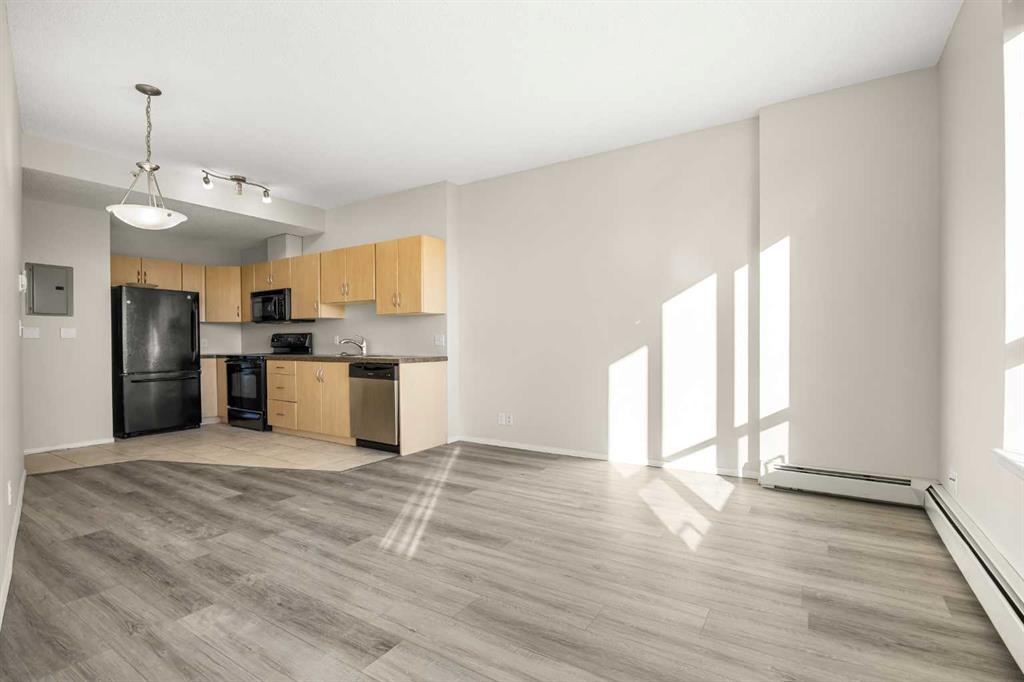 Welcome to this bright 1-bedroom apartment on the 19th floor in the heart of the Beltline! This well-designed unit offers 480 sq ft of functional living space with 9-foot ceilings and an open-concept layout. The functional Kitchen flows seamlessly into the sunny East-facing Living and Dining room combo, filled with natural light throughout the day. Vinyl plank flooring adds style and durability to the Living room, Dining area, and Bedroom. From the Living room, step out to the East-facing balcony with gas h...