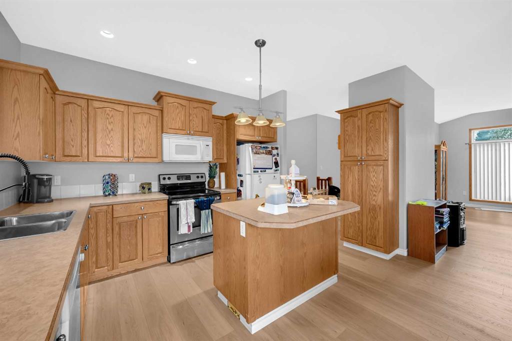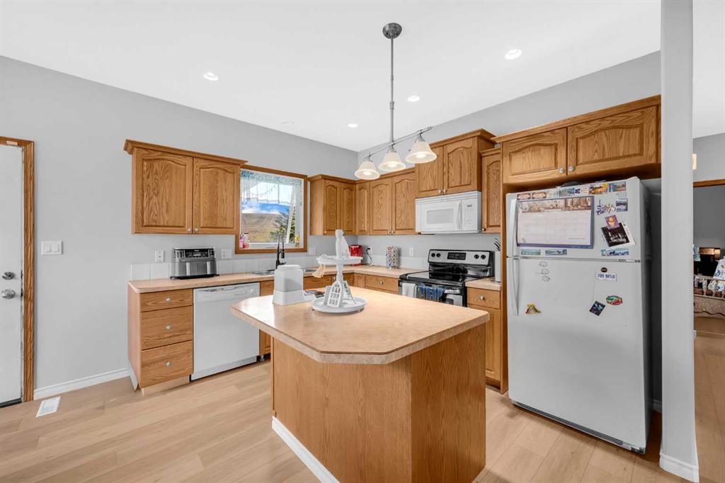 Welcome to the charming community of Carbon, nestled in a picturesque valley along Highway 836 with a gentle stream winding through the Village. This beautifully maintained 5-bedroom, 2-bathroom bungalow is tucked away in a quiet cul-de-sac and backs onto a serene green space, offering the perfect balance of privacy and natural beauty. A spacious rear deck provides an ideal spot for relaxing or entertaining, while inside you’ll find a bright, open layout with brand-new vinyl plank flooring and custom blinds...