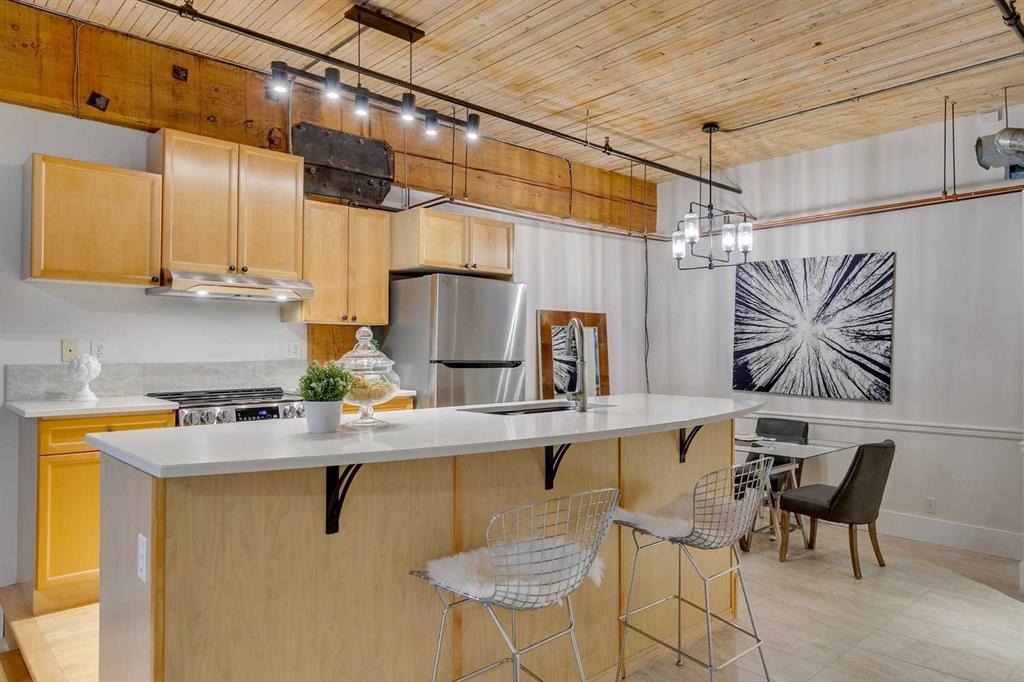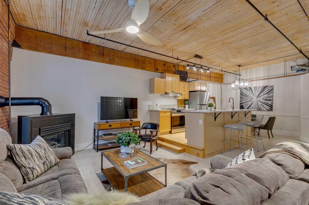 "THE HUDSON" a masterpiece loft, and piece of The Hudson Bay company historic building warehouse converted to loft. LIVE, WORK, & RELAX IN THIS QUIET FRESHLY UPDATED UNIT! BRAND NEW ENERGY EFFICIENT LG APPLIANCES, FRESHLY PAINTED , & UPDATED FIREPLACE. NEW WINDOW COVERINGS, HEATED FLOORS, MURPHY BED & QUEEN, for the convenience of an additional bed. DID I MENTION THE LARGE UNDERGROUND HEATED TITLED PARKING?! WALK 1 BLOCK NORTH UNDER THE BRIDGE PUTS YOU AT "THE CORE" accessing all your downtown ...