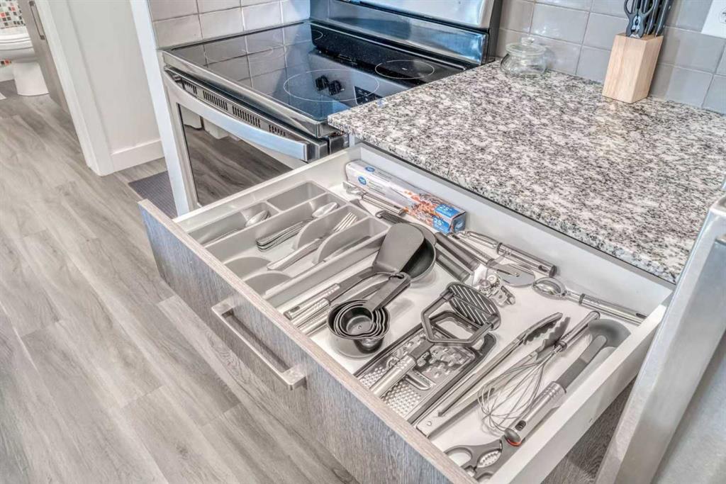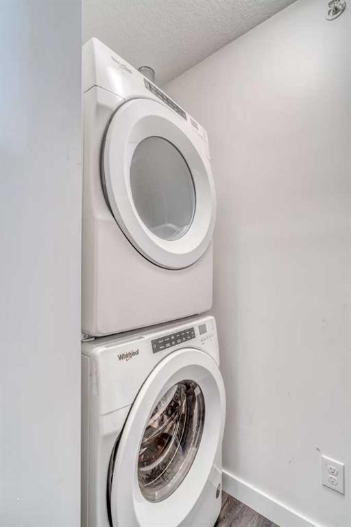 Welcome to this move-in ready top-floor souce facing unit in Skyview Landing, offering the perfect blend of modern upgrades, 9 foot ceiling, natural light, and unbeatable convenience. Upon entering, you are greeted by a spacious kitchen featuring upgraded Whirlpool stainless steel appliances and granite countertops, which flows effortlessly into the open dining and living areas with bright south-facing windows. The spacious balcony provides downtown city views and is roughed-in for air conditioning, making ...
