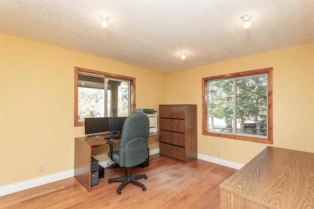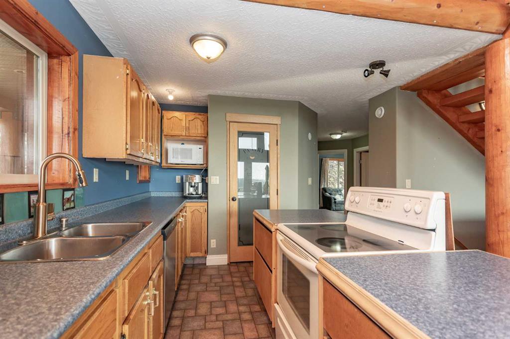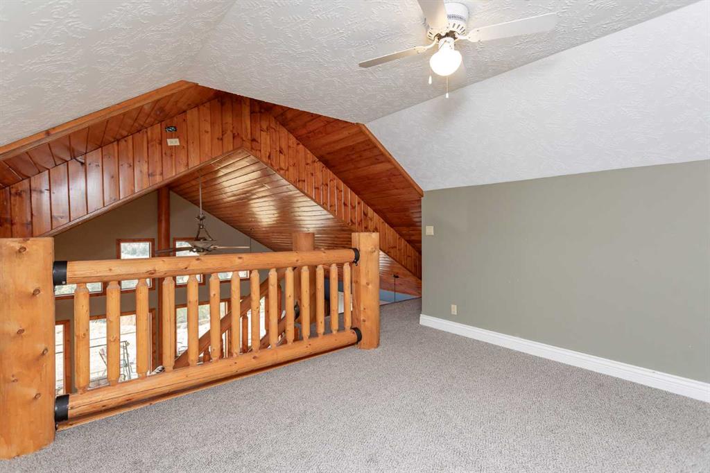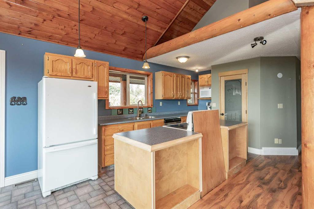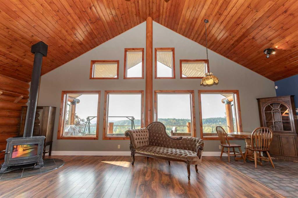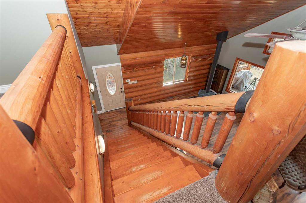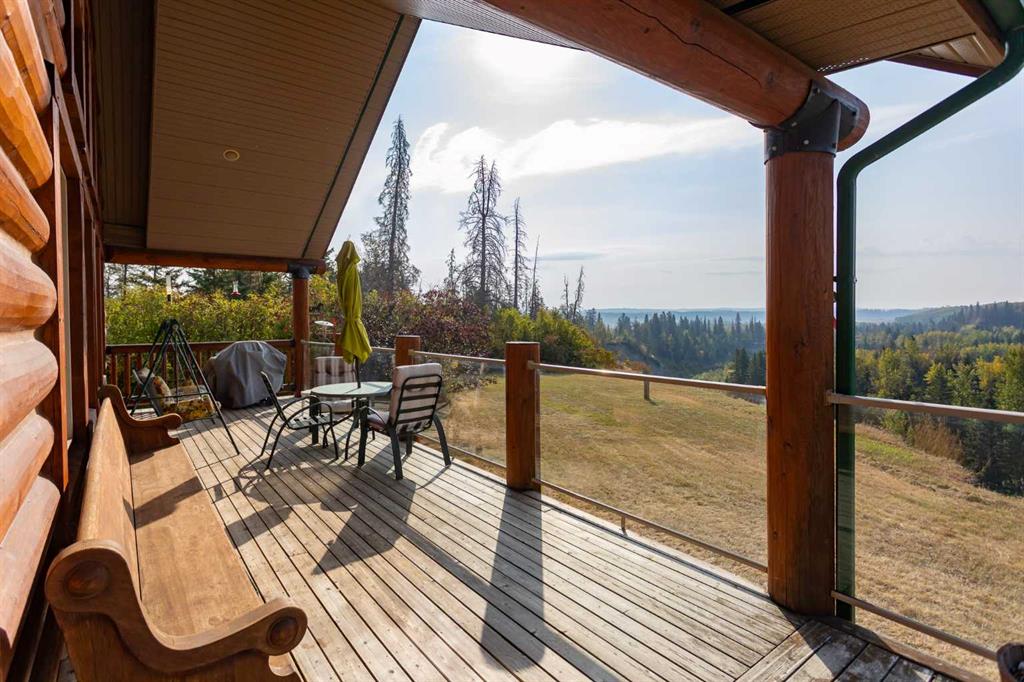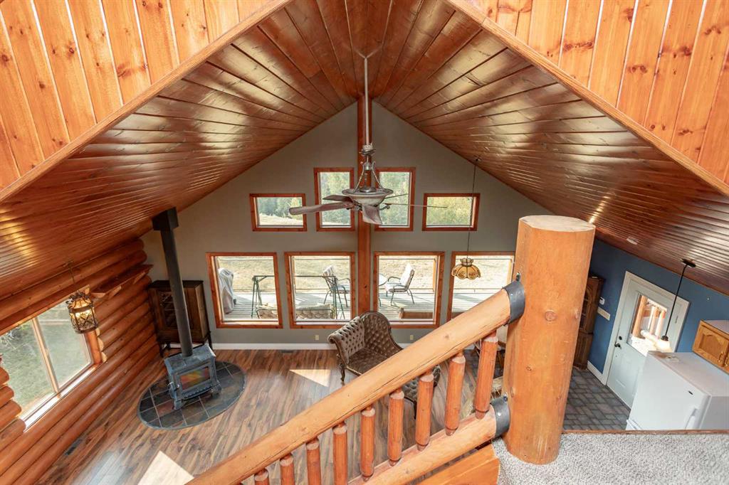 Set on 5.54 acres above the Blindman River, this log-style 1.5 storey home offers a peaceful setting with wide-open valley views and plenty of space to enjoy country living. The main floor is bright and welcoming, featuring a spacious living room with a wood stove, large south-facing windows, and direct access to the full wrap-around deck. The kitchen is practical and inviting with oak cabinetry, laminate countertops, a walk-in pantry, and a comfortable dining area. Two well-sized bedrooms, a 3-piece bathro...