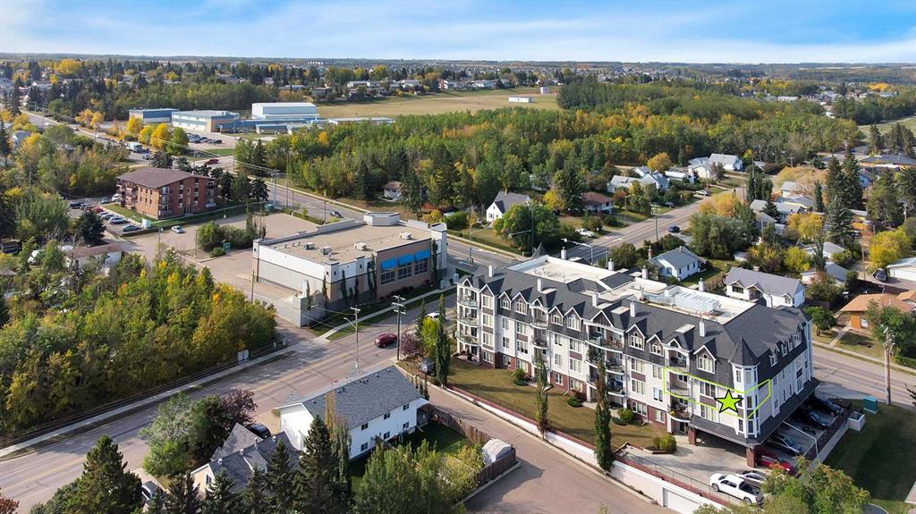 Luxury Downtown Condo – A Few Blocks from the Lake! Welcome to The Watermark, an upscale and beautifully maintained condo complex located in the heart of Sylvan Lake. This large corner unit, one of the largest in the building at 1,146 sq. ft., is situated on the quieter northeast side of the building. It features 2 spacious bedrooms and 2 full bathrooms, including a large soaker tub in the ensuite, offering a bright and functional open floor plan. The kitchen showcases granite countertops, an eating bar, a...