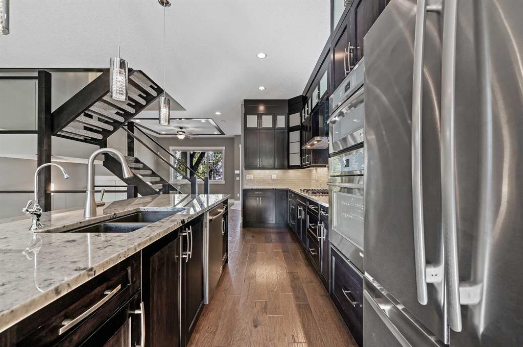 Upscale semi-detached home in Mount Pleasant offers a blend of sophistication and functionality with nearly 3000 Sq.Ft. of thoughtfully designed living space on a quiet, tree-lined street in Calgary’s inner city. High ceilings on all three levels—including the fully developed basement— and large windows provide natural light for the open floor plans.. The main floor features textured hardwood, detailed millwork, and an architecturally striking open staircase. The gourmet kitchen, finished with granite count...