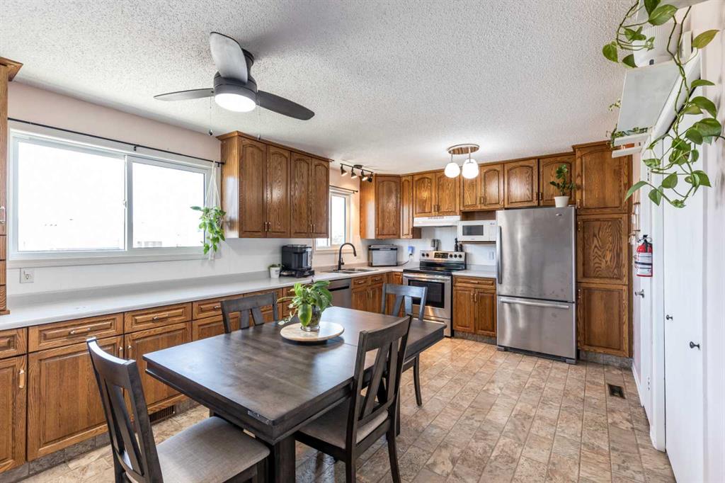 Welcome to this fully finished bi-level located in a family-friendly SE neighbourhood close to schools, shopping, and surrounded by parks—offering exceptional space and functionality for a growing family. With 5 bedrooms (3 up, 2 down) and multiple living areas, this home is designed for comfortable everyday living. The main floor features a bright and spacious front living room highlighted by a cozy electric fireplace. The large kitchen offers classic oak cabinetry, ample counter space, and a generous dini...